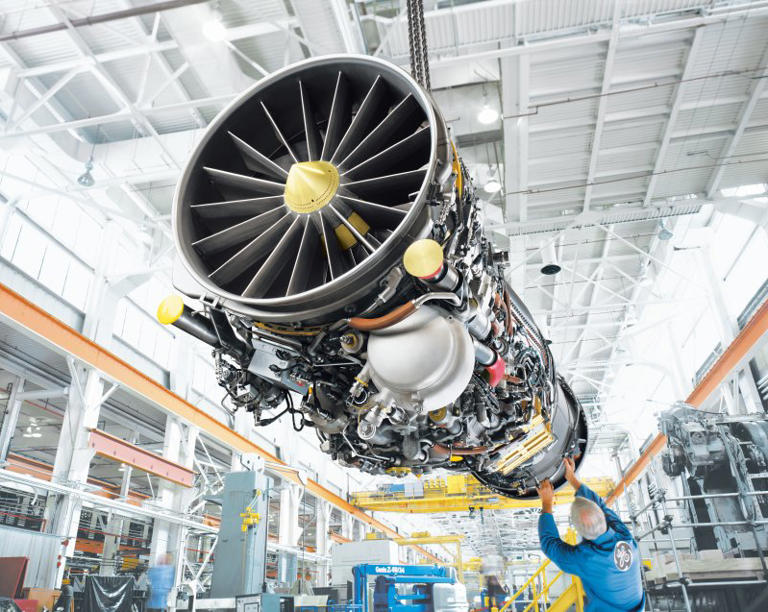 | 한국형 전투기 KF-21을 위한 GE의 F414 엔진. 방위사업청은 첨단 항공엔진 개발계획안을 심의하고, 2030년대 후반까지 3조3500억원을 투입해 1만 6,000lbf급 첨단 항공엔진을 개발할 예정이다. KF-21을 위한 제너럴 일렉트릭 F414 엔진은 F404 엔진을 기반으로 개발되어 추력을 더욱 증가시키고 고고도-고속 영역에서 퍼포먼스 향상을 위해 효율이 증대된 고압 터빈과 정밀한 형상 설계로 유체역학 성능이 강화된 단결정 압축 블레이드로 구성된 압축기를 도입했다. GE·에어로스페이스 제공 |